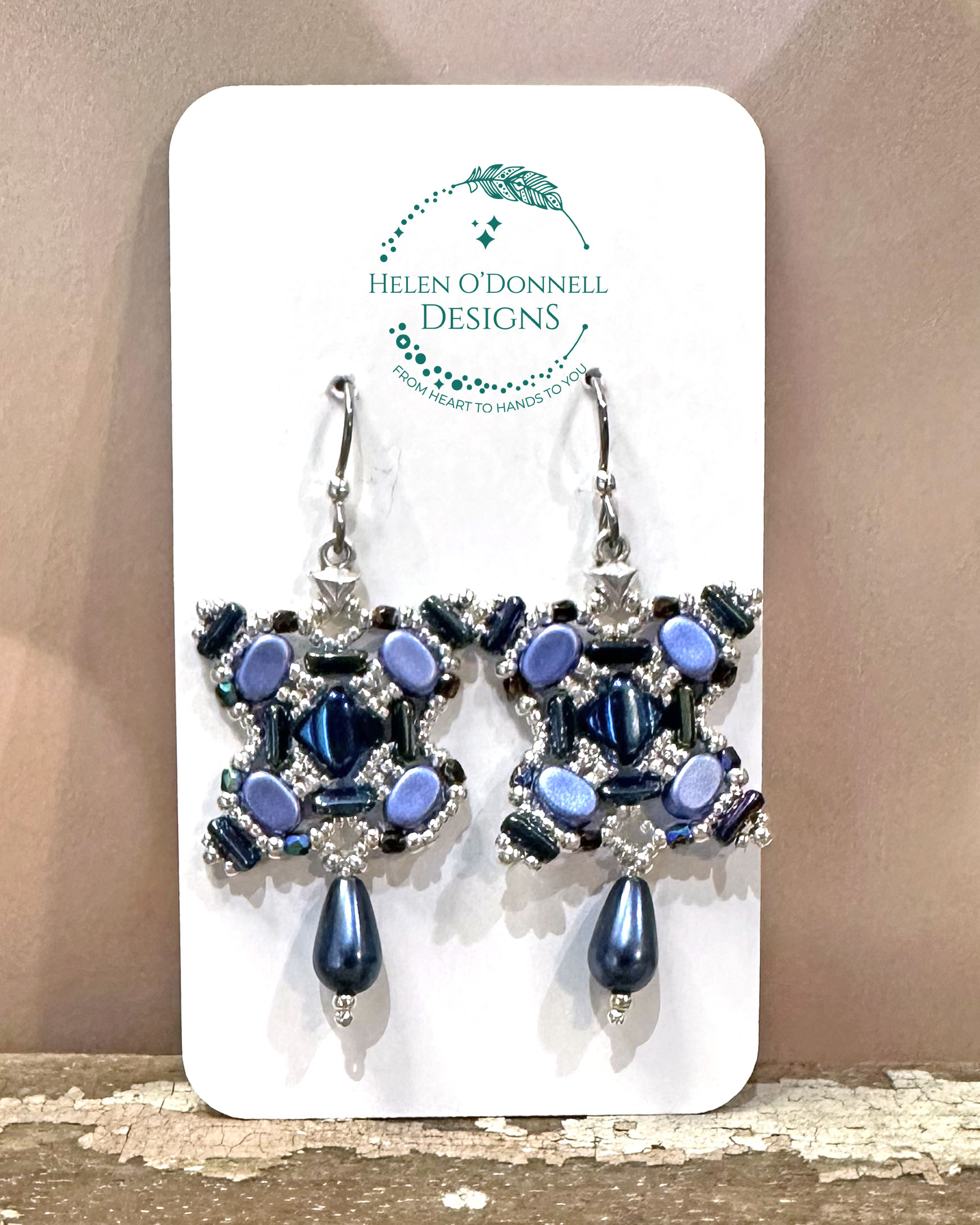 Advanced beginners and up can easily accomplish this project. Please be adept at bead-weaving and working with shaped, multi-hole beads. Here are the materials required for one pair of earrings: